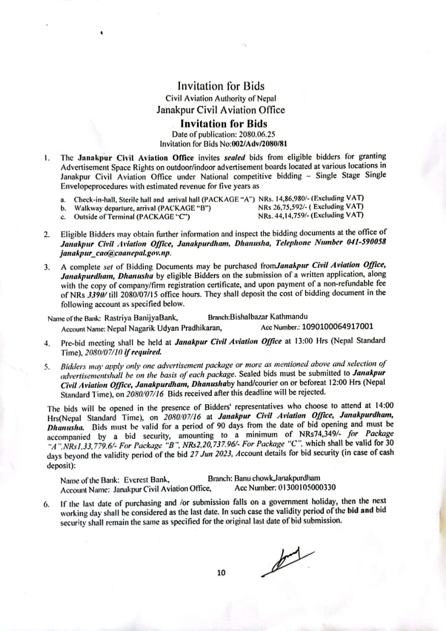 Invitation for bids for Advertisement Space