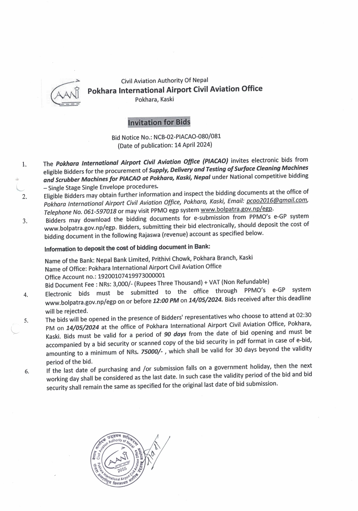 Invitation For Bids NCB-02-PIACAO-080/081 (PIA CAO)