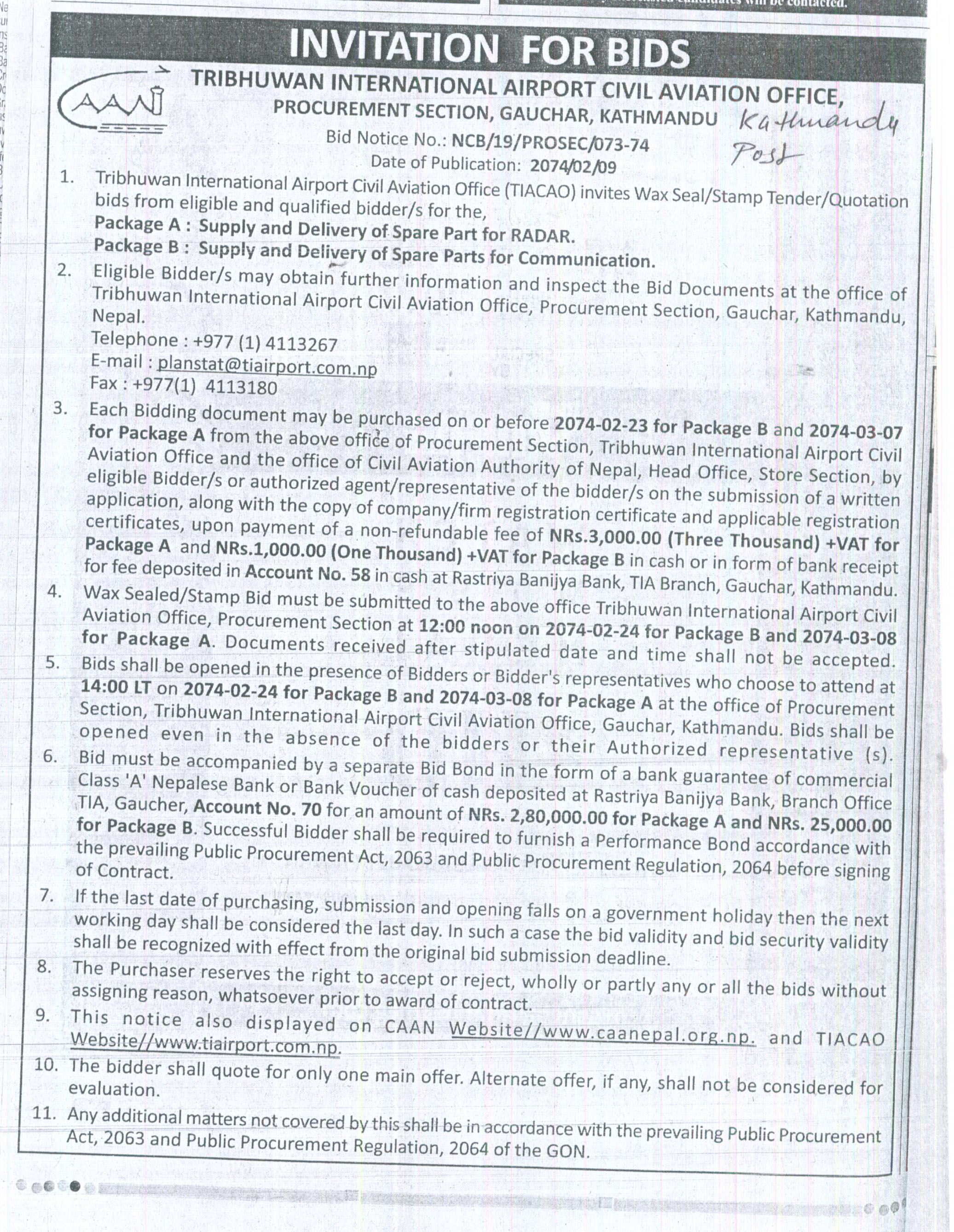 Invitation for Bids NCB/19/PROSEC/2073-74 2074/02/09