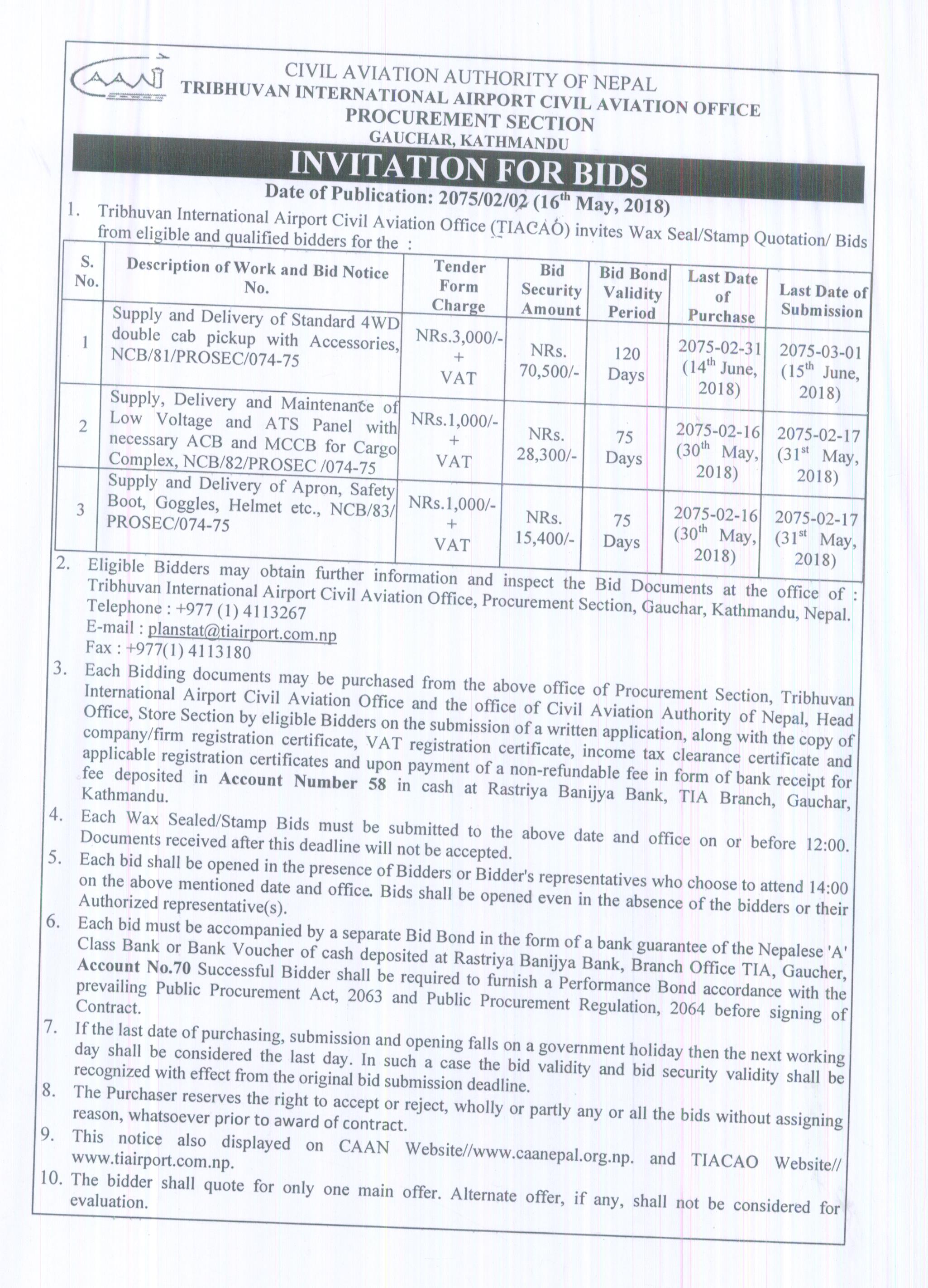 Invitation for Bids NCB/81-83/PROSEC/074-75