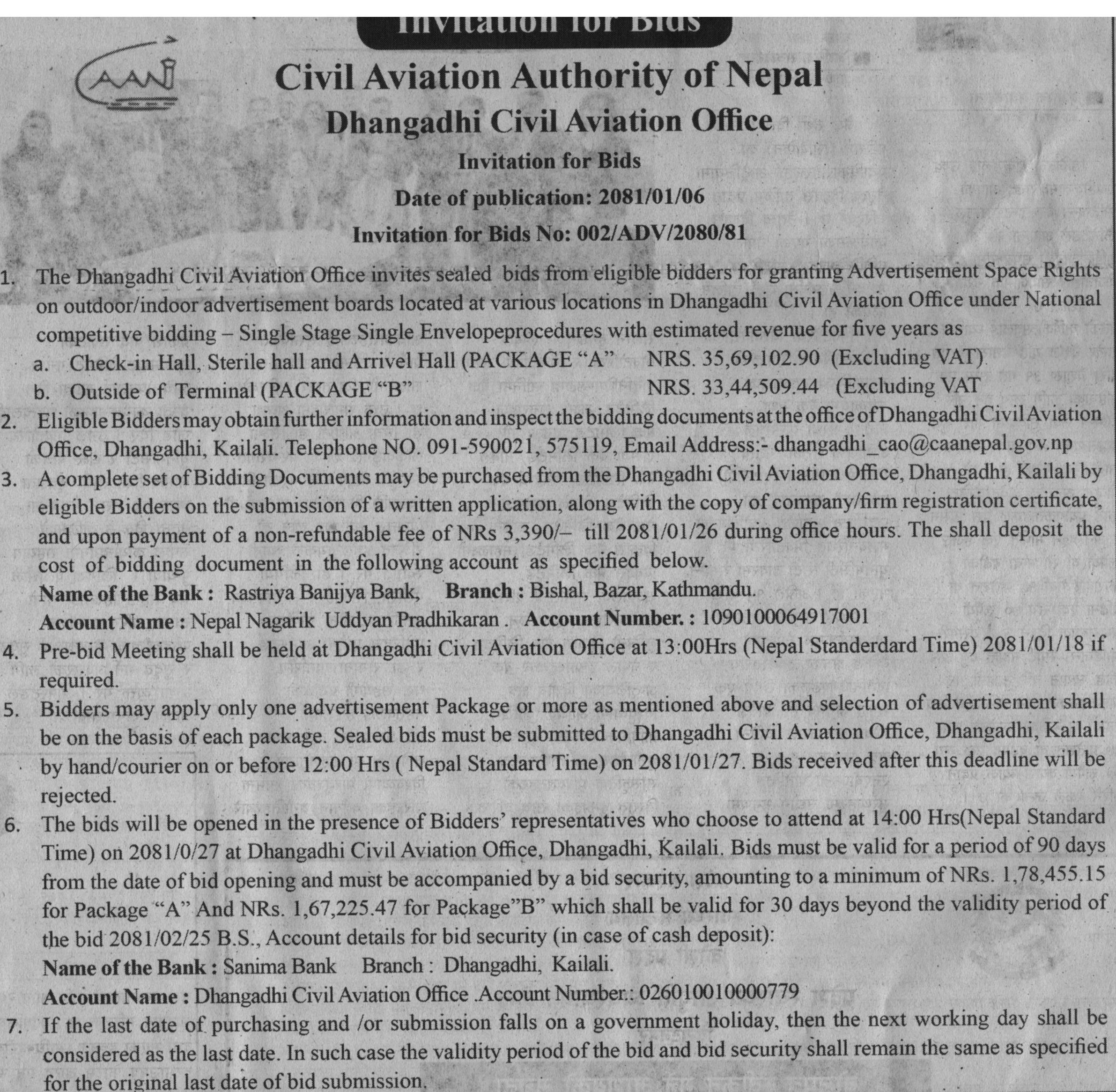 Invitation For Bids No: 002/ADV/2080/81 (Dhangadi CAO)