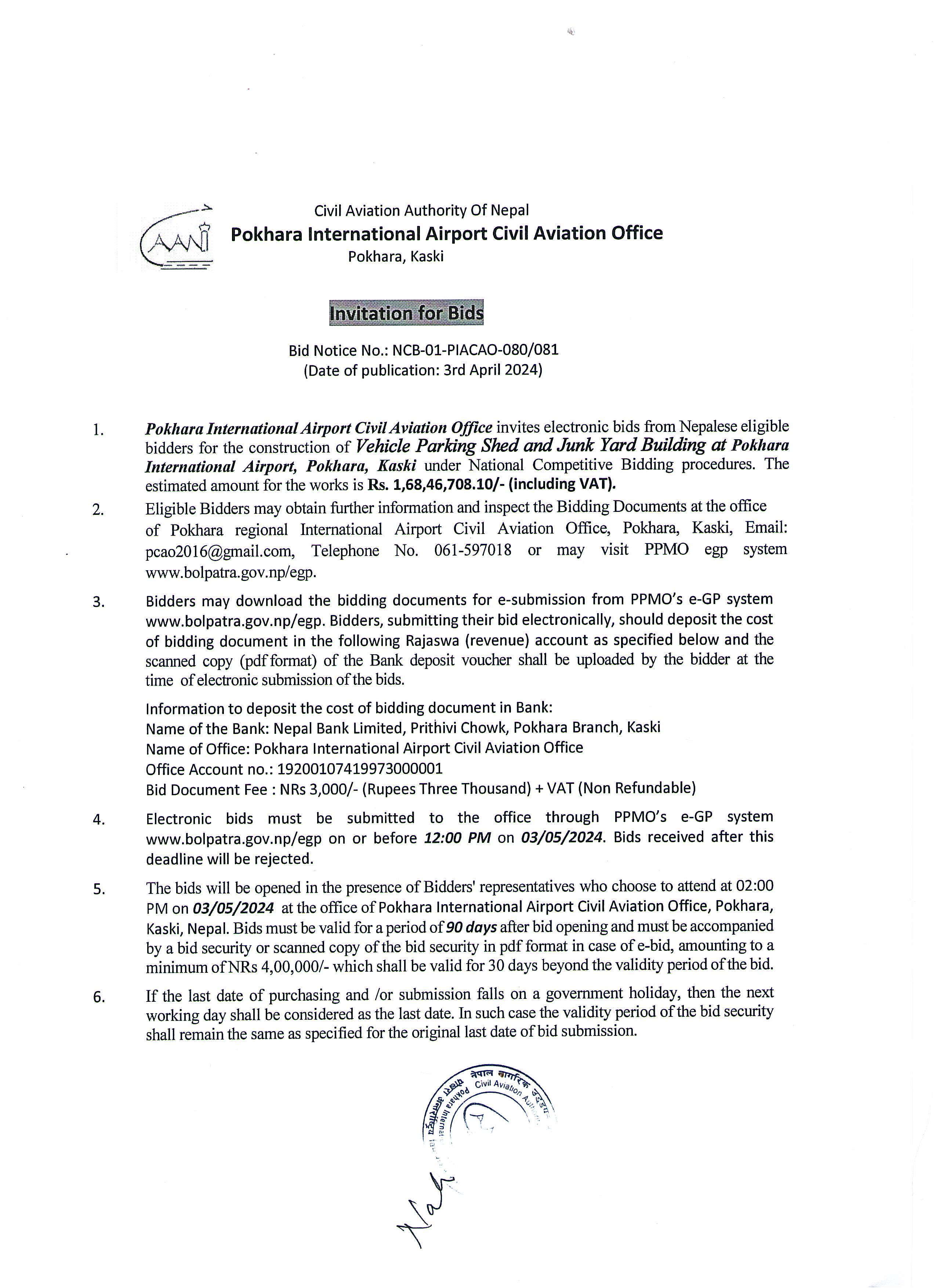 Invitation for EBids (bid no.: NCB-01-PIACAO-08080)