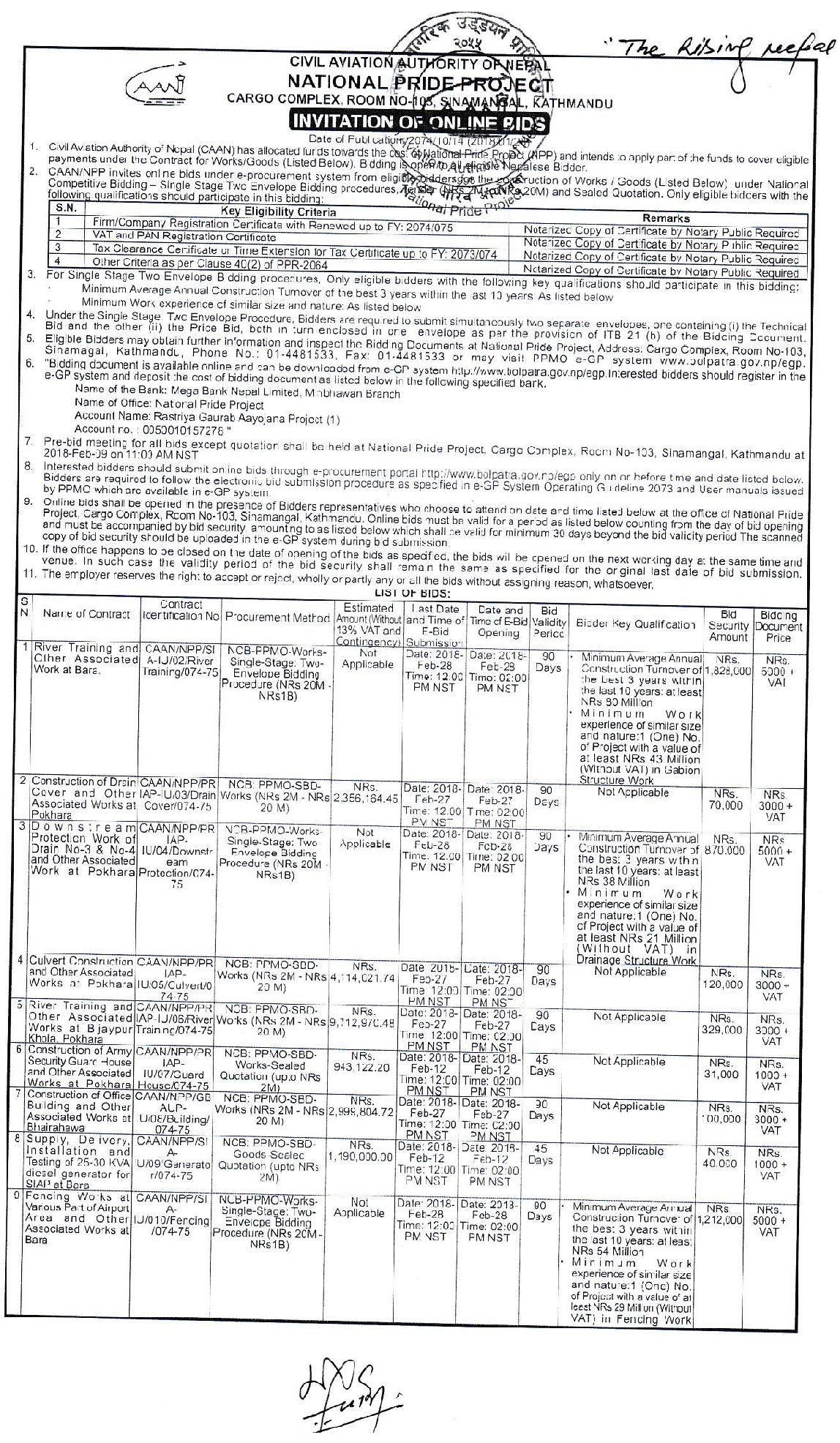 Invitation of Online BIDS 2074/10/14 National Pride Project, CargoComplex