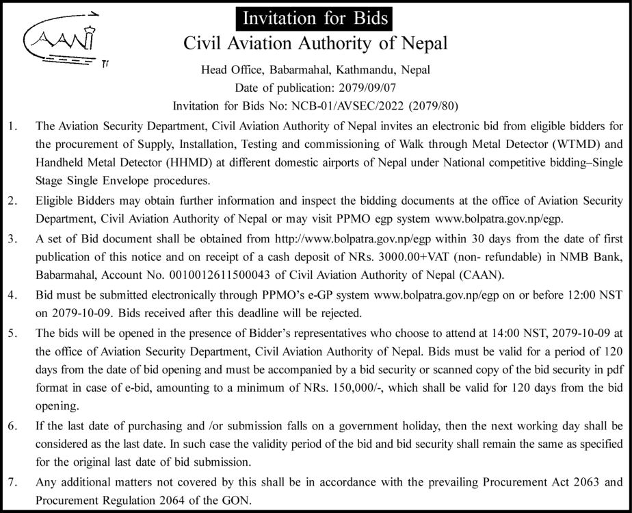 Invitation for online Bids [NCB-01/AVSEC/2022(2079/80)]