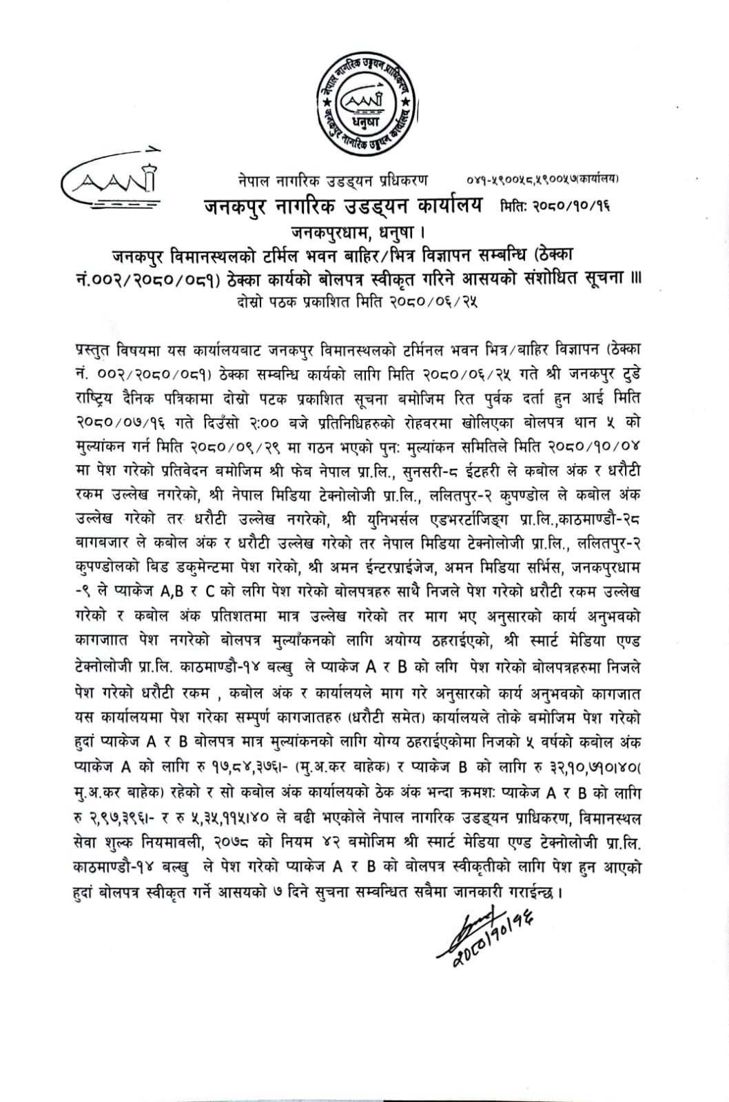 LOI - Janakpur Airport Terminal Advertisement