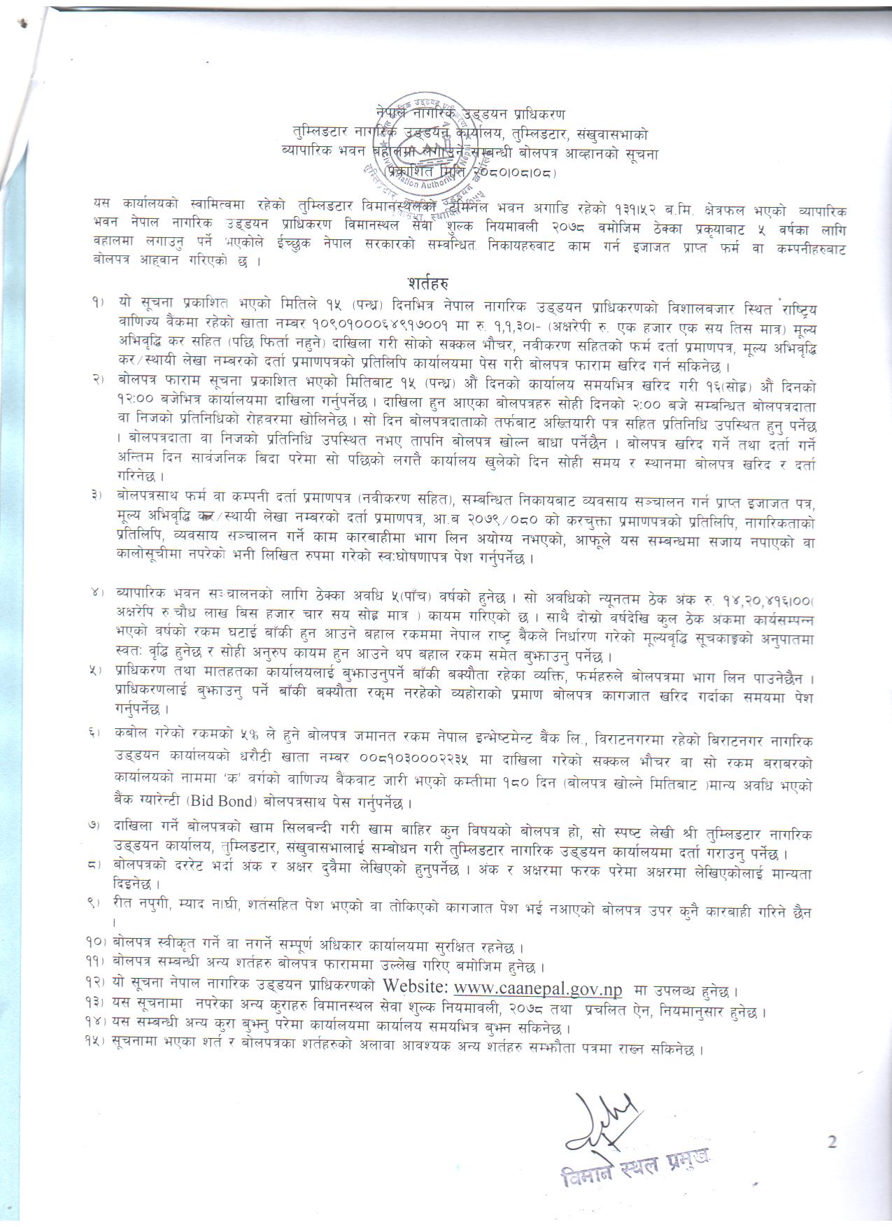 व्यापारिक भवन बहालमा लगाउने सम्बन्धि बोलपत्र आह्वानको सूचना (तुम्लिङटार ना.उ.का )